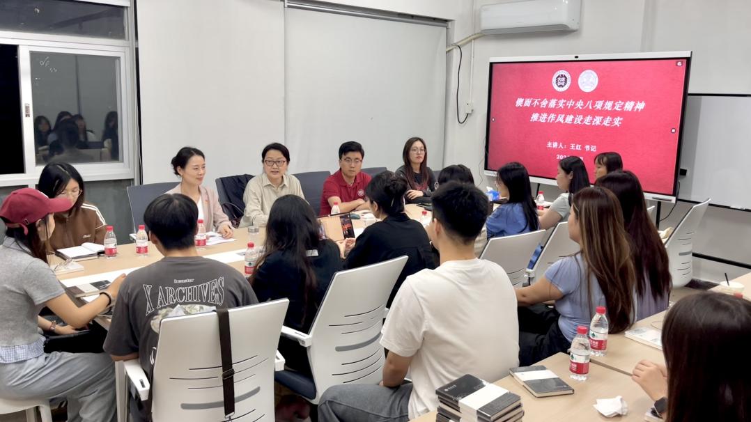 王红书记带领全体党员学习中央八项规定及其实施细则,并对中央八项规定的实施过程、基本内涵、意义作用和实践要求等多个维度进行了深入浅出地讲解。她鼓励马院学子不仅要成为党的理论的学习先锋,更要成为党的理论的传播者和和践行者,不忘初心、牢记使命,以更加坚定的信念投身实践,以更加务实的作风为一本道