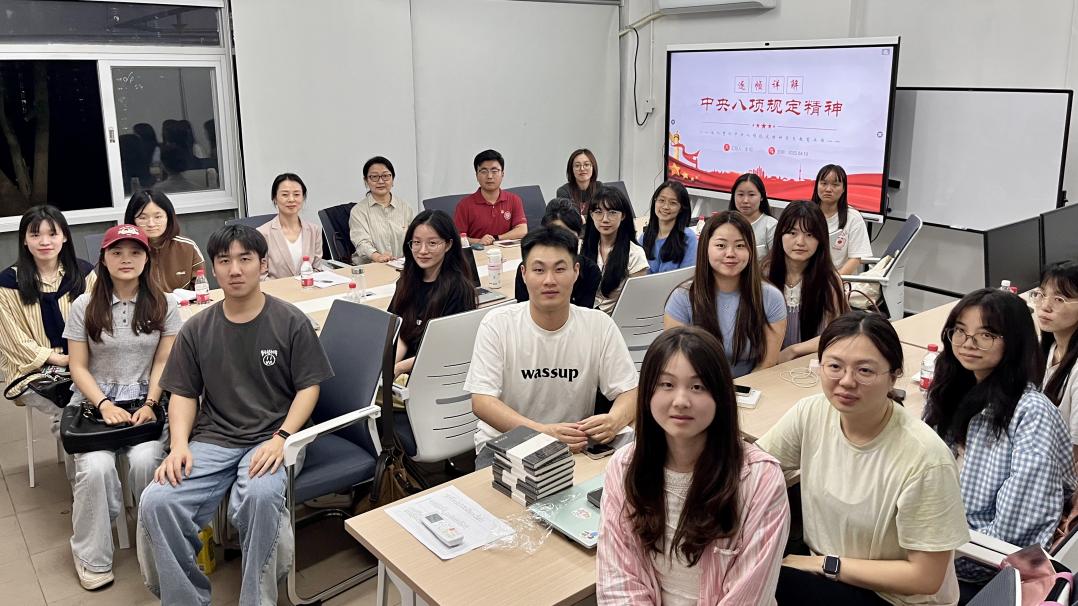 为推进深入贯彻中央八项规定精神学习教育,扎实做好党建引领“一站式”学生社区建设工作,4月10日晚,在文山湖社区活动室,一本道