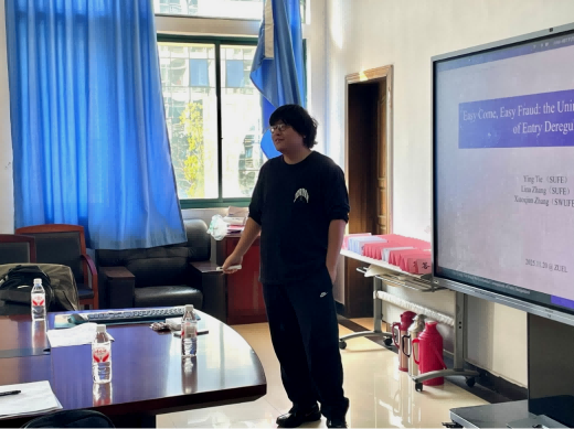 研讨议题:free entry, fake firms, and economic crime: an unintended consequence of registration deregulation研讨嘉宾:铁瑛上海财经大学商学院教授研讨时间:2025年11月20日(星期四)9:30~16:30研讨地点:文泉楼南207会议室嘉宾简介:铁瑛,上海财经大学商学院教授,入选中组部高层次青年人才计划。在《经济研究》《管理世界》《经济学(季刊)》《世界经济》等刊物发表论文,主持完成国家自然科学基金青年项目(特优)、教育部人文社科青年项目各一项,主持在研国家自然科学基金面上项目一项。主持人:宋丽智