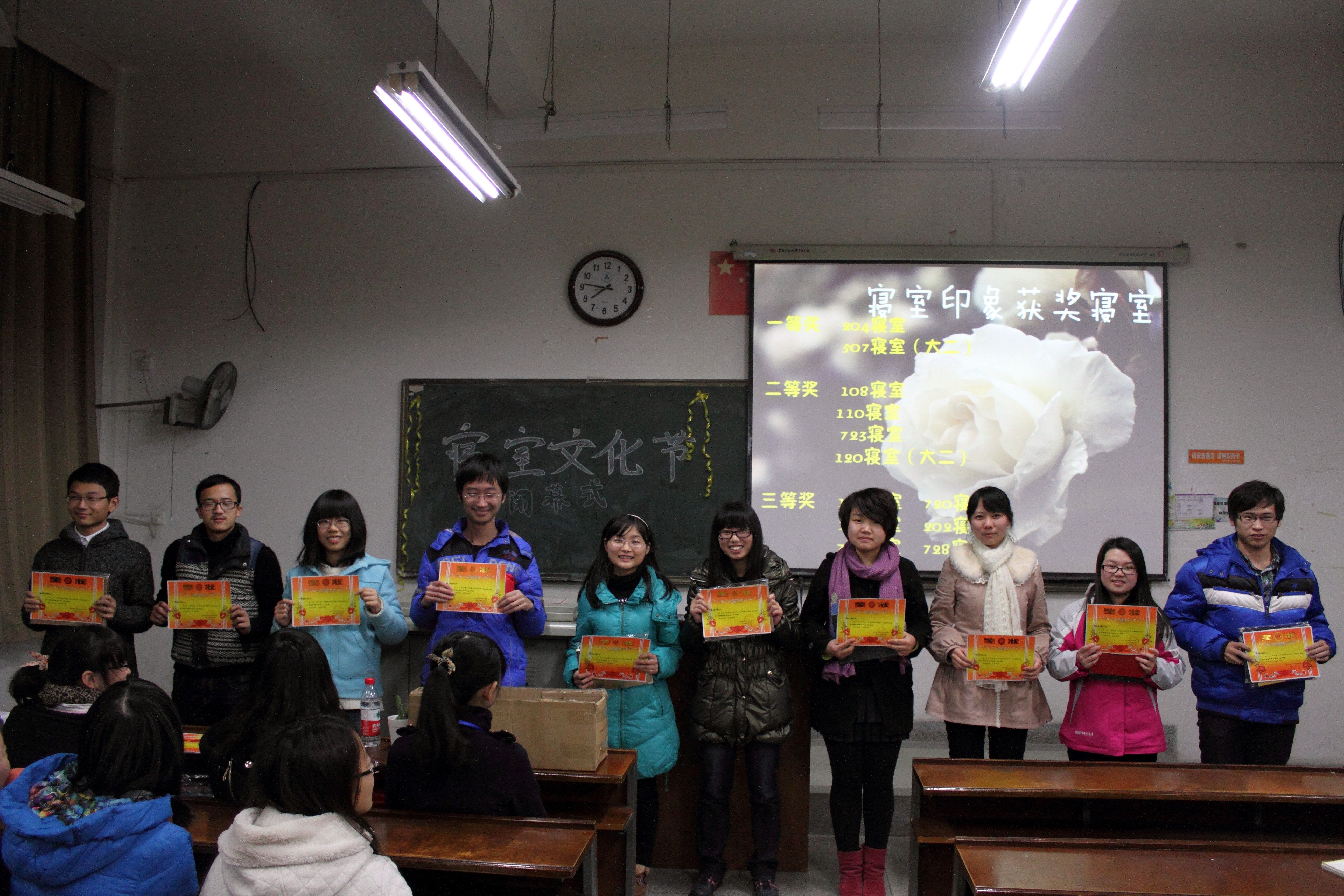 (新闻及网络技术部 岳爱民黄泰榕)12月6日晚7:30分,经济学院诣美女生营第一届寝室文化节闭幕仪式暨颁奖仪式在文澜207举行。 本次文化节共分为三个环节,分别为寝室风采大赛、寝室印象大赛及宿舍杯,共有69次寝室参加,在我院内获得了广泛的好评及反响。 简单的开场白过后,主持人通过PPT向观众展示精彩宿舍风采,各个寝室或文艺或卖萌或创新的PPT博得了观众的一片叫好声。在PPT展示过程中,场下掌声不断,欢笑声不断。随后是颁奖环节,在寝室印象大赛中,204、507寝室荣获一等奖,二等奖由108、110、723、120寝室摘得,111、720、125、202、722、728寝室获得三等奖。120寝室和507寝室的代表分享了自己打扮寝室、与室友相处的技巧,赢得阵阵掌声。 紧接着进行的事宿舍杯的颁奖仪式,一等奖由210宿舍获得,二等奖由735、721寝室获得,三等奖由734、216、204寝室获得。为其助兴,723宿舍四位好友上台演唱了《朋友》,歌声动人,情谊满满。 随后是游戏环节,主持人现场抽取观众进行眉目传情游戏,游戏内容诙谐幽默,不仅观众们笑弯了腰,连主持人都忍俊不禁。 最后的重头戏仍是颁奖环节,105、116、118、126、133、216、217、725、732、733寝室获得了最佳温馨寝室奖,109、112、204、211、728寝室摘得最佳创意奖,131、201、203、208、723寝室荣获最佳文艺寝室奖。随后,闭幕仪式结束,诣美女生营第一届寝室文化节圆满落幕。 由我院女生部主办的寝室文化节丰富了我院学生的课余生活,增进了宿舍成员的情感交流,同时也锻炼了学生的动手能力,获得了广泛的好评。祝愿寝室文化节越办越好,同时也希望我院能举办更多的好活动。 |