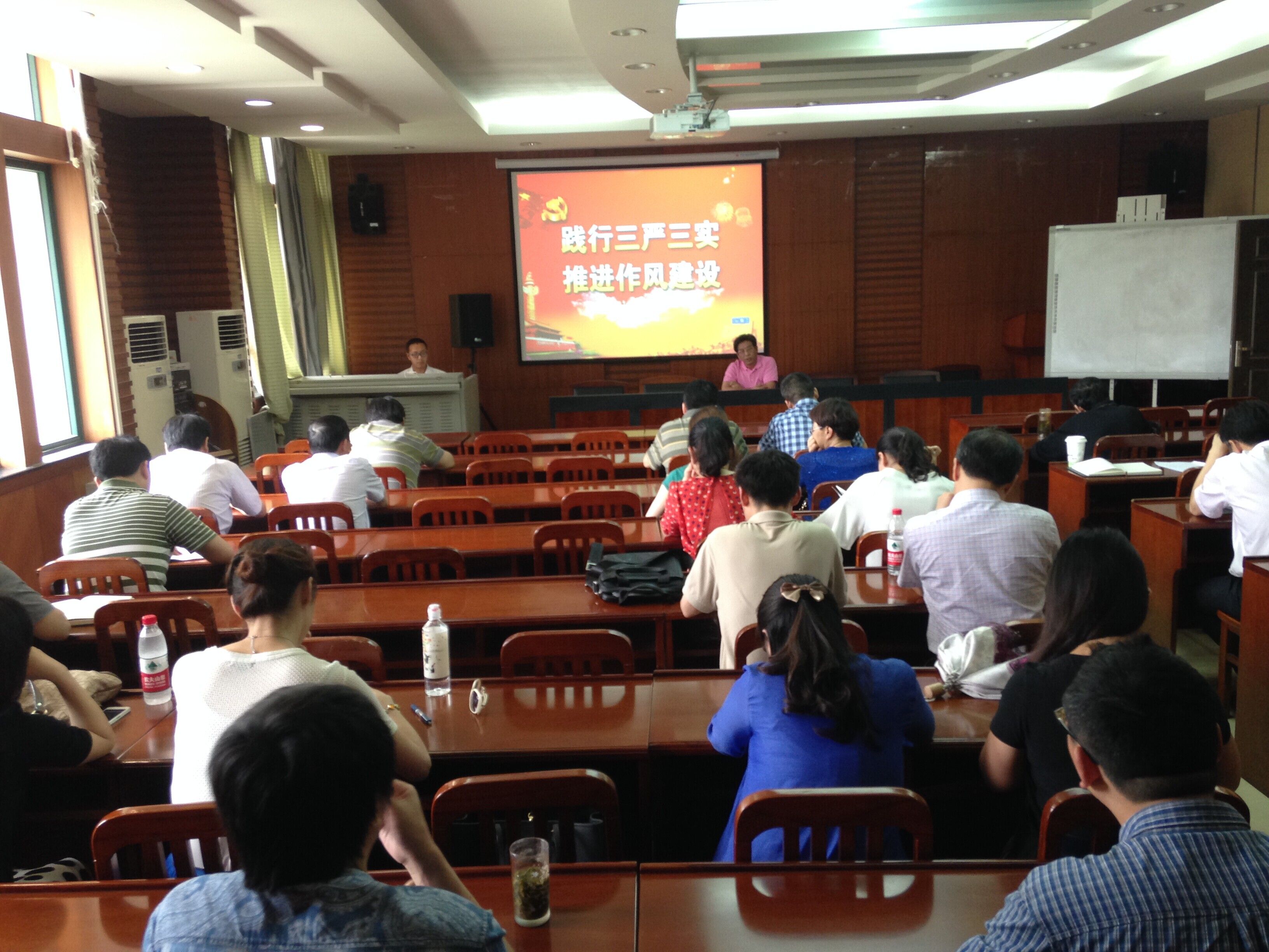 2015年6月11日下午14:30,我院响应学校党委的号召,在文泉楼206会议室举行了“三严三实”的专题党课,学院全体教职工及学生代表参加了党课学习,党课主讲人为经济学院党委书记武身汉。 本次专题党课,武身汉书记主要针对三个主要问题给与讲解,一是“三严三实”的理论背景;二是“三严三实”的理论内涵;三是如何践行“三严三实”。