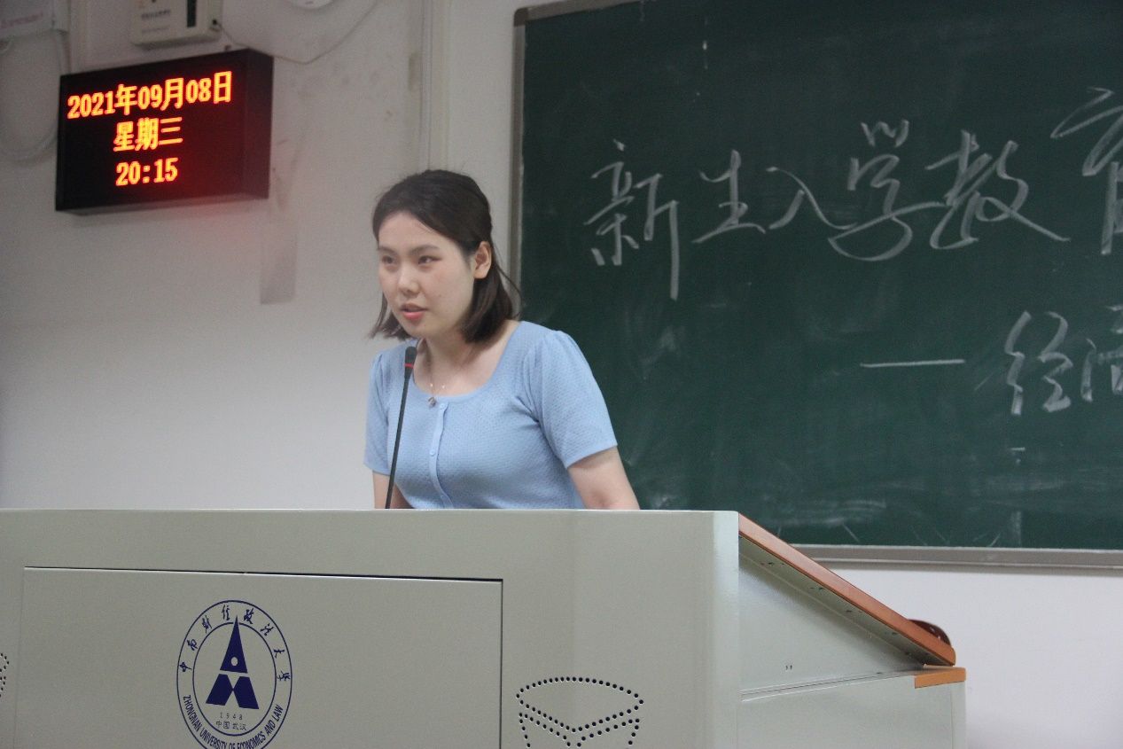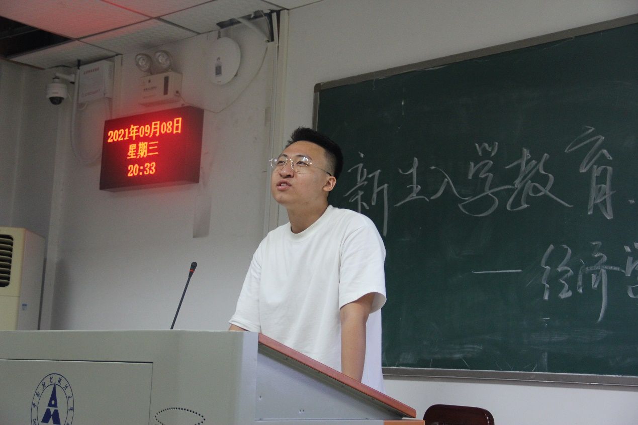 经济学院研究生会执行主席熊保维进行了新生防诈骗教育,通过十一种主要诈骗方式和相关案例提醒同学们时刻保持警惕,提高财产保护意识。
