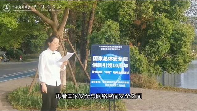 在第九个全民国家安全教育日到来之际,经济学院国际商务第二党支部于4月15日在南湖校区南湖绿道旁开展国家安全知识宣讲活动。本次活动的主题为“警惕网络‘勾连’陷阱,共筑国家安全防线”,活动分为专题教育、互动环节、实操演练三个部分,活动由支部宣传委员江欣同志主持。