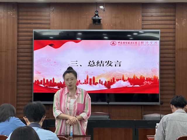 为深入学习贯彻习近平新时代中国特色社会主义经济思想,进一步提升理论宣讲质效,5月30日下午,习近平经济思想理论宣讲团在文泉楼206会议室顺利召开习近平经济思想理论宣讲团试讲暨第一次集体备课会,此次活动由宣讲团负责人刘畅主持。经济学院研究生辅导员岳明泽老师、雷菁老师、校研究生党员理论宣讲团成员郑家宝以及宣讲团成员参加活动。