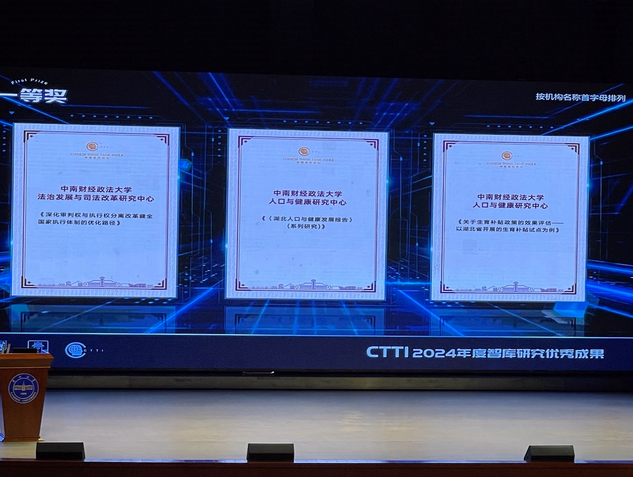 在最新发布的CTTI 2024年度智库建设最佳案例与智库研究优秀成果推介中,中南财经政法大学经济学院院长、人口与健康研究中心主任石智雷教授团队荣获“CTTI 2024年度智库建设最佳案例示范案例”和两项“CTTI 2024年度智库研究优秀成果一等奖”!