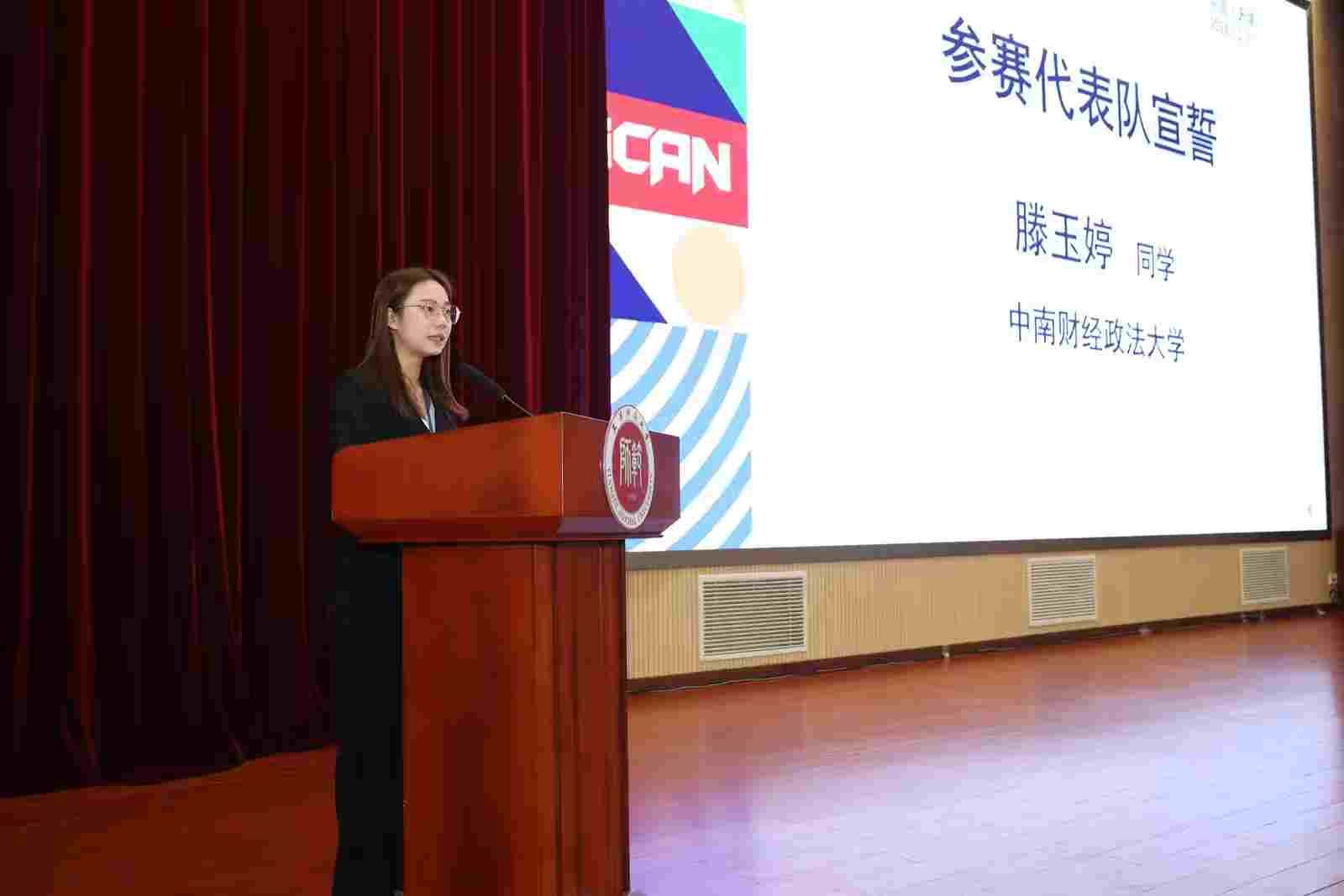 其中,本科生团队成员由2022级第一届数字经济本科专业班级的滕玉婷(队长)、许怡馨等多名本科生成员组成。滕玉婷同学作为来自全国143所高校参赛队伍的代表,在本届全国总决赛开幕式上宣誓发言,展现我院数字经济本科人才培养的综合能力与风貌。