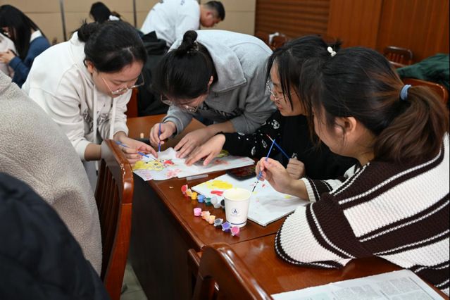(学生通讯员 刘叶 摄影 孙安)随着元旦佳节的临近,2024年12月27日经济学院“共筑中国梦,同绘华夏春”新年活动在热烈的氛围中拉开序幕,经院师生齐聚文泉楼206教室,通过写春联、拓印画以及投壶等传统项目,共同迎接新年的到来。此次活动不仅丰富了同学们的校园生活,也展现了经院师生积极向上的精神风貌以及共庆新春的期盼之情。
