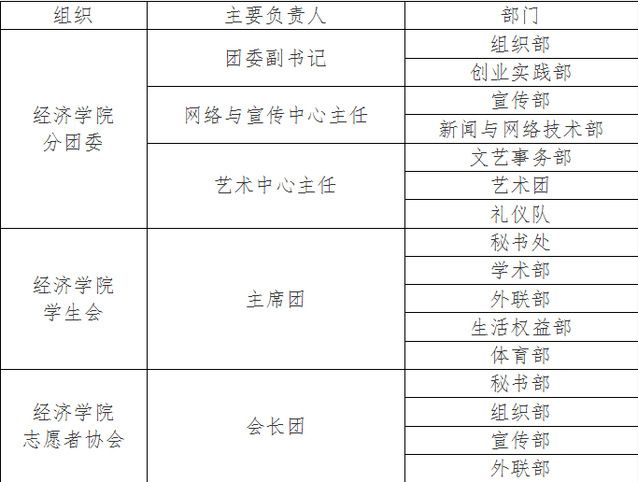 经济学院分团委内设各部门负责人不超过4人;