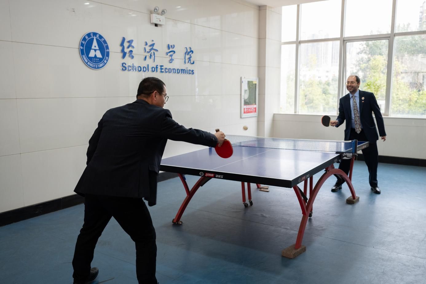 本次罗马一大代表团来我院交流访问获得圆满成功,双方在经济学院进行了友好的“乒乓交流”,在互动中增进了友谊。