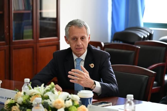 随后双方在课程合作、联合培养项目、学生互访、学者互访、共办论坛等方面充分交流了意见。在课程建设方面,双方探讨了共建本科生、研究生英文课程并推动学生互修课程、互认学分;在联合培养方面,双方讨论了3年中南财经政法大学本科+2年罗马一大硕士的本硕连读项目实施可行性;在学生、学者互访方面,双方决定继续推动两校合作框架下的交换生与学者交流活动;双方交换了共办“中意青年学者论坛”的合作意愿。