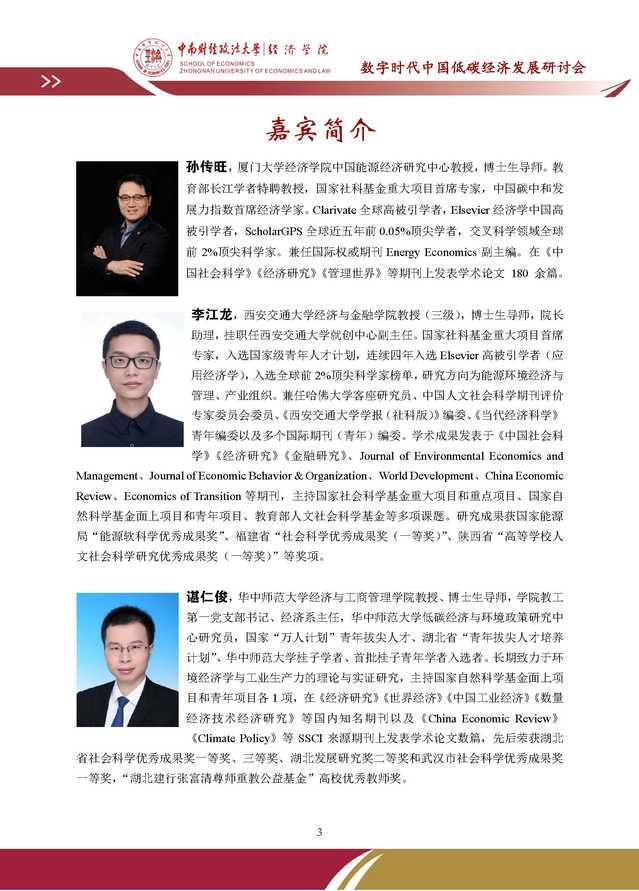 【学术会议】“数字时代中国低碳经济发展研讨会”会议议程
