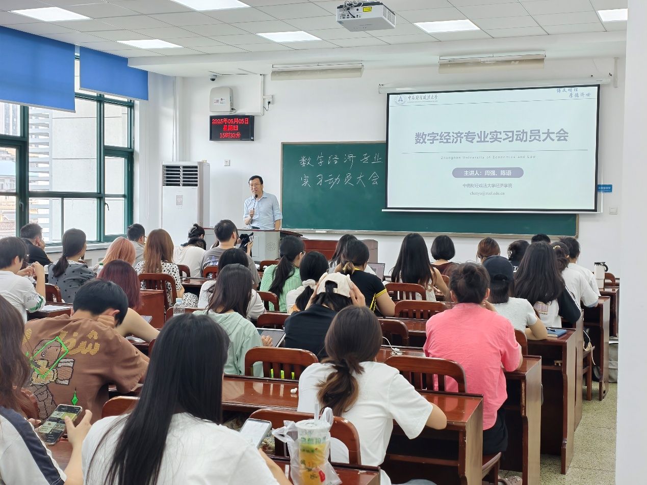数字经济系实习动员大会由系主任周强主持,教研室主任陈语副教授等教师及数字经济系全体2022届本科学生参加。动员大会以“扬帆启航新征程 实践砺炼促成长”为主题。