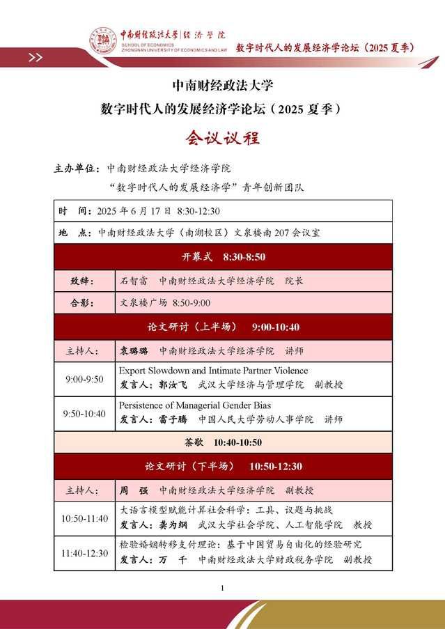 【学术会议】数字时代人的发展经济学论坛(2025夏季 第二期)预告