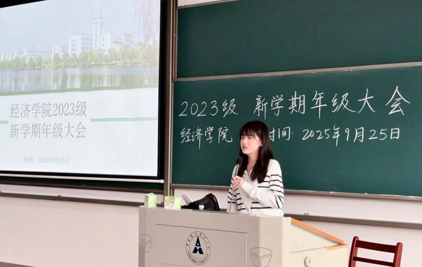 (学生通讯员 张逸飞)金秋九月启新程,砥砺奋进谱新篇。为明确学业要求、筑牢安全防线、锚定发展方向,2025年9月25日下午,经济学院于南附304教召开了2023级本科生新学期年级大会。本次会议由辅导员包伦娜老师主持,2023级全体本科生参加。