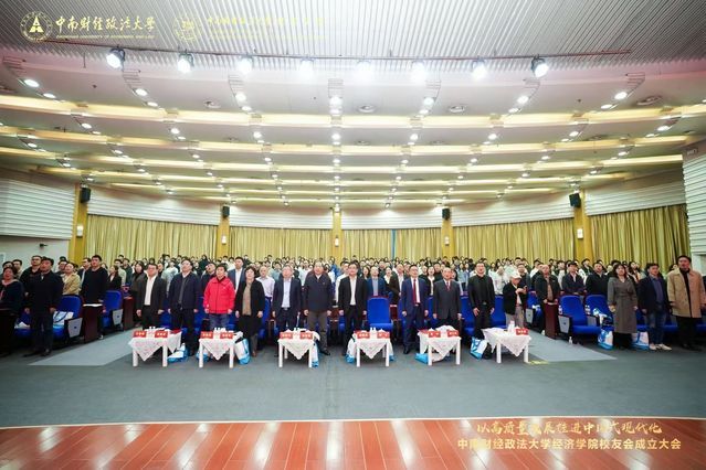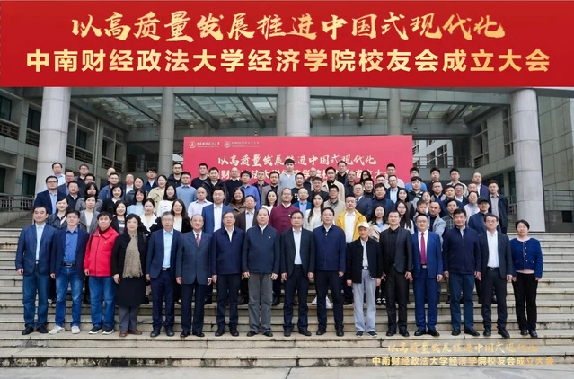 (通讯员 巩震鲁 黄亚群)金秋时节,硕果满枝,暖意融融,南湖之畔处处洋溢着喜迎校友的热烈氛围。11 月 1 日上午,以高质量发展推进中国式现代化研讨会暨中南财经政法大学经济学院校友会成立大会在南湖校区文泉楼报告厅隆重召开。校党委书记侯振发,校党委常委、副校长覃红,原校党委书记徐敦楷,原副校长邹进文,党委办公室、学校办公室主任兼督察办公室主任刘建明,校友工作与社会合作部部长笪宁,原经济学系党总支书记、校纪委副书记张香珍,经济学院原党委书记胡江滨、原党委副书记蒋雪岩,经济学院教授程启智,特邀嘉宾湖南财政经济学院党委书记易棉阳出席大会,返校校友代表、学校相关职能部门负责人、学院离退休教师代表、在职教师代表及学生代表齐聚一堂,共襄盛会。