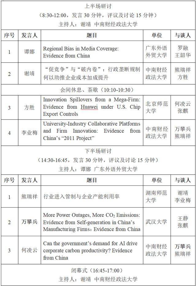 会议地点:中南财经政法大学(南湖校区)文泉楼南207会议室