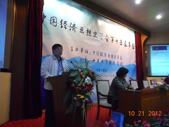 2012年10月20-21日,由中国经济思想史学会主办,山东大学经济学院承办的中国经济思想史学会第十五届年会在山东大学举行。来自中国社会科学院、北京大学、清华大学、北京师范大学、复旦大学、武汉大学、山东大学、上海财经大学等高校、科研院所的100余名专家学者出席了本次年会。我校经济学院邹进文教授、瞿商教授、朱华雄副教授、宋丽智副教授向大会提交论文并应邀参加了本次年会。与会代表围绕“中国经济思想的变迁与齐鲁文化的本土化、国际化研究”这一主题进行深入研讨,取得了丰硕的成果。中国经济思想史学会会长、武汉大学商学院严清华教授做了工作报告,并对中南财经政法大学经济学院经济思想史专业在2012年度获得一项中国社科基金项目(邹进文教授)、两项教育部人文社科基金项目(朱华雄教授、宋丽智副教授)进行了高度的赞扬和祝贺。