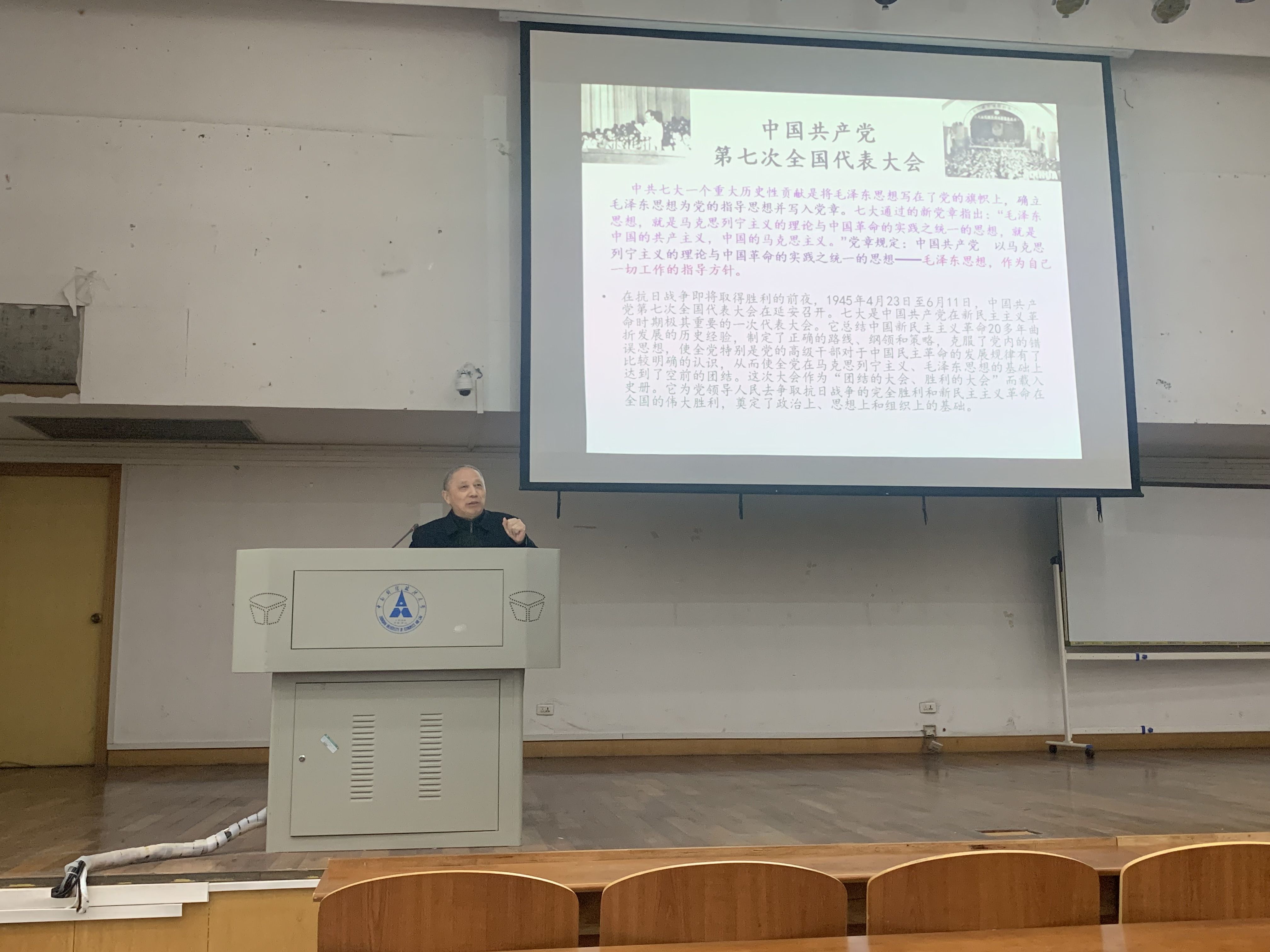 开班典礼结束后,第一堂党课由朱书刚老师为大家讲授《新思想领航新征程--习近平新时代中国特色社会主义思想解读》,朱教授以俄乌冲突引入,从理论到历史再到实践,并从马克思主义中国化历程、习近平新时代中国特色社会主义思想的创立、基本理论和方略以及中共十九届六中全会对习近平新时代中国特色社会主义思想的新概述四个方面详细讲解,为大家带来了一节生动有趣又深刻的党课。