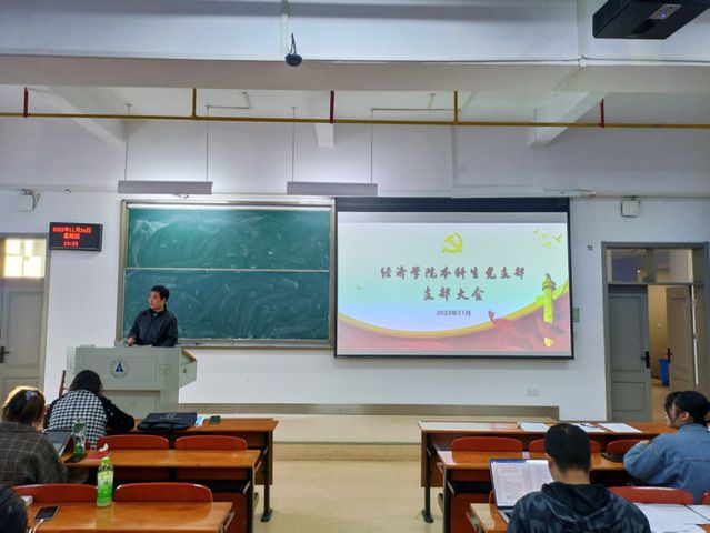 (通讯员:盘意香)2022年11月24日下午,经济学院本科生党支部在南附203教室召开支部大会。俞凡书记、周琼老师、孟庆红老师及支部全体党员、预备党员、支委会成员参加会议。此次会议讨论接收梅力文等33名同志为中共正式党员的相关事宜。本次会议由支部组织委员张若晨同志主持。