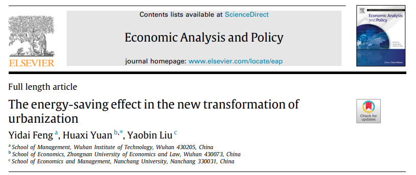 2023年3月,我院教师袁华锡副教授作为通讯作者的合作论文《The energy-saving effect in the new transformation of urbanization》被经济学国际知名期刊《Economic Analysis and Policy》接收并正式发表。
