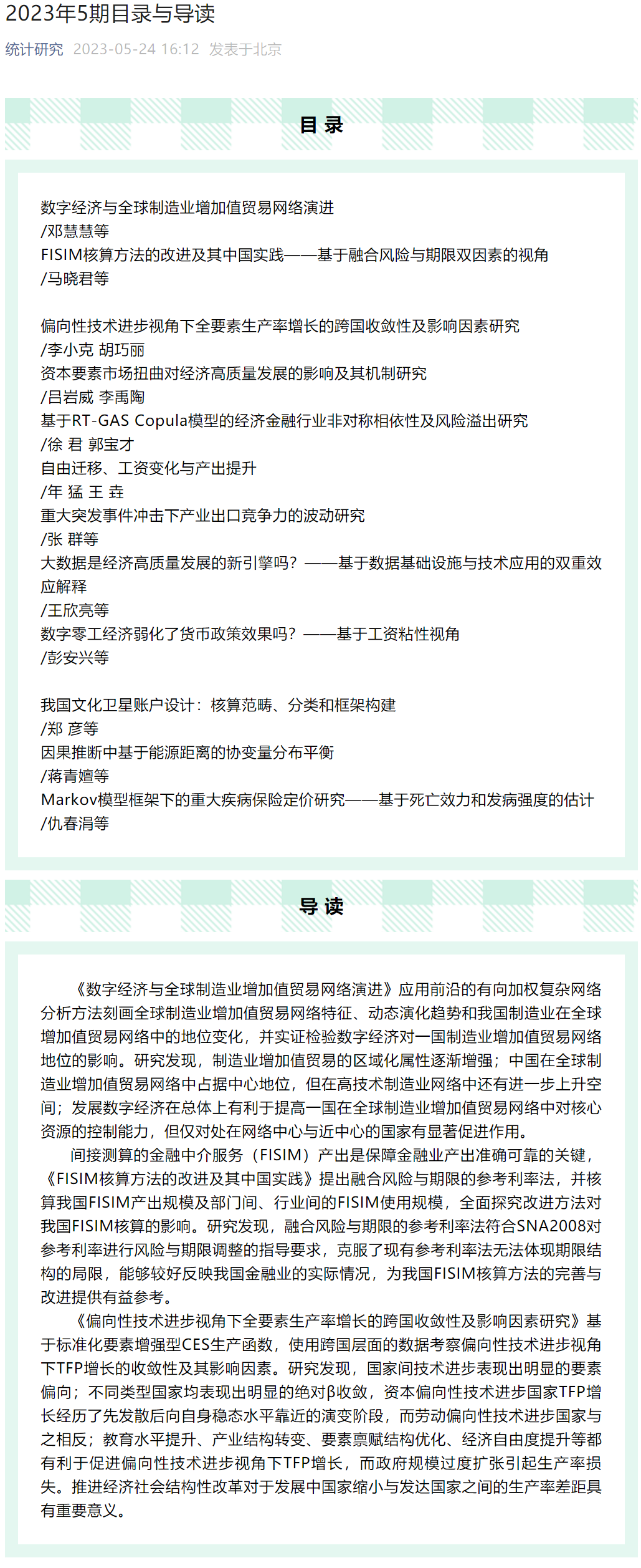 《统计研究》于1984年创刊,是由国家统计局主管,中国统计学会、国家统计局统计科学研究主办的学术刊物,是我国统计领域具有重要影响力的理论刊物。