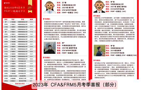 ②助力高效备考研究生:CFA&FRM的学习是考研专业课、数学、英语学习的良好铺垫,CFA&FRM考试中会涉及到概率统计、金融词汇、数量分析、金融市场与产品、风险衡量与管理、投资分析、法律、会计与伦理等专业知识,都与考研的内容部分重合。学习CFA&FRM可以把考研知识点模块化、分散化,降低压力,助力高效备考研究生。