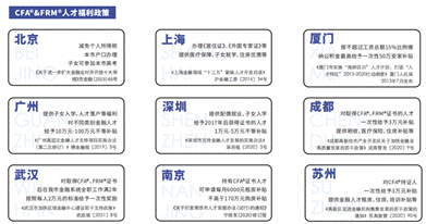 CFA&FRM认证,得到了全球多个市场的监管机构、地方政府、高等教育机构的认可。在中国内地,北京、上海、广州、深圳等20余省市地方政府已经发布了针对CFA&FRM持证人的人才吸引或支持政策。