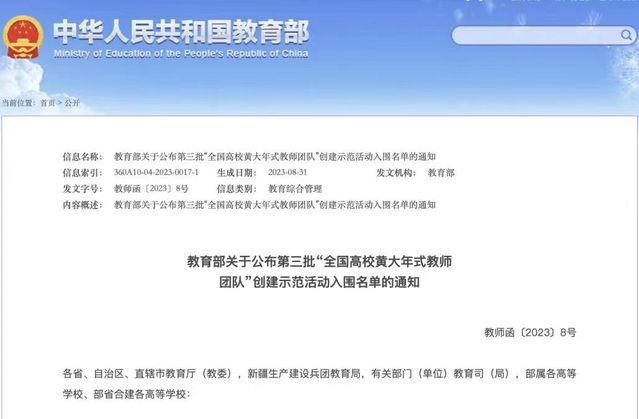 2023年9月1日,教育部公布第三批“全国高校黄大年式教师团队”创建示范活动入围名单,我院理论经济学教师团队成功入围。