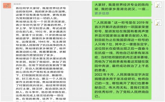 为弘扬时代主旋律,聚焦党员先锋事迹,培养出能“做大事、担大任、成大才”优秀研究生党员,发挥先进党员的模范引领作用。经济学院各研究生党支部于2023年8月至9月组织开展了“学习党员先锋,传承榜样精神”事迹分享会,鼓励党员同志积极分享家乡榜样党员事迹。