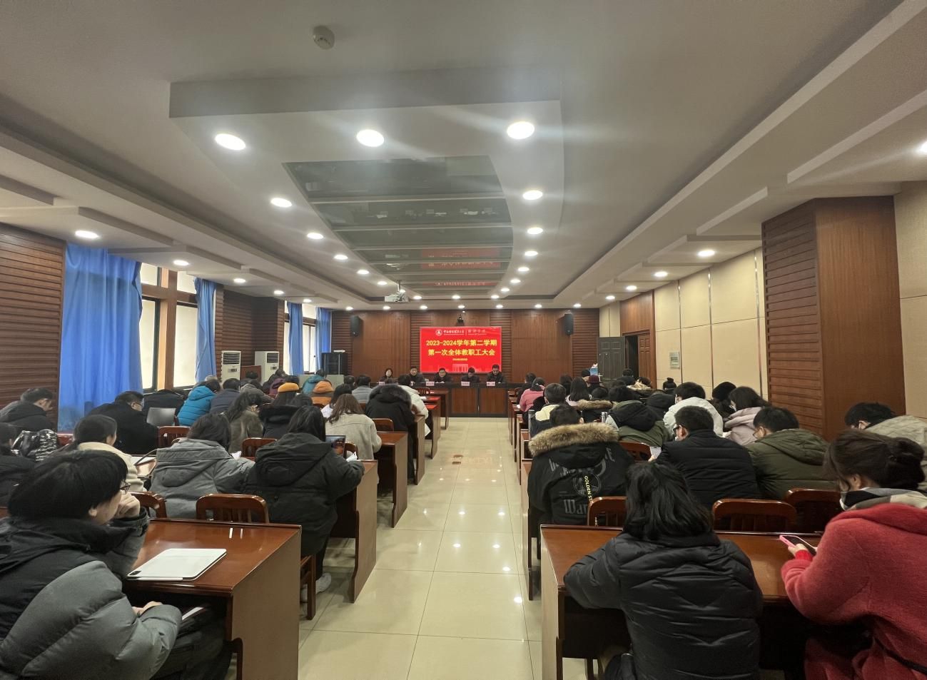 大地回春,万象更新。刘刚书记首先为全体教职工送上新年祝贺,对上学期各位老师的辛勤付出、支持与配合表示感谢,随后对学院新进教职工表示热烈欢迎,并邀请分管教学、行政等工作的领导依次对上学期和本学期工作做出总结和展望。