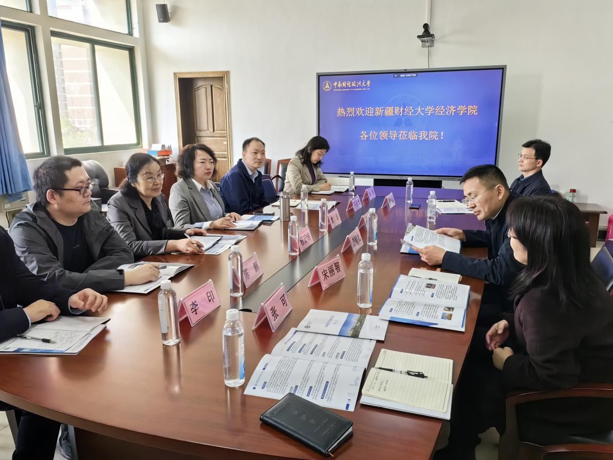 3月22日上午,新疆财经大学经济学院院长袁培教授一行6人来我院调研并进行交流座谈。学院院长李小平教授、学科建设办公室副主任庞明礼教授、副院长张鸿武教授和宋丽智教授参加会议。座谈会由李小平院长主持。