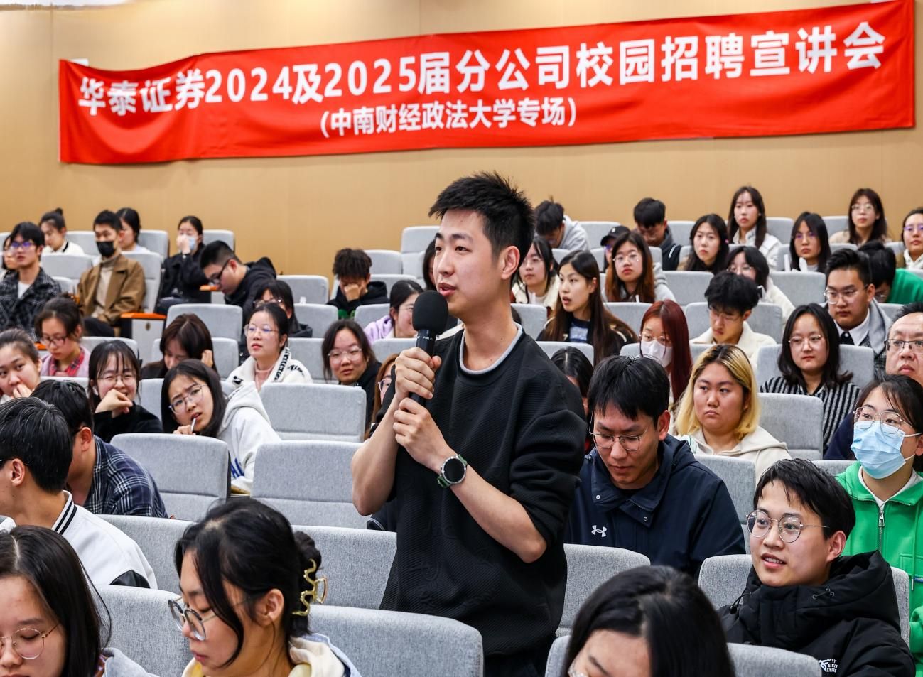 最后的互动交流中,来自经济学院、工商管理学院、会计学院、信息工程学院等学院学生分别就实习考察与转正留任、入职门槛与能力要求、财富管理与“三农”问题、券商如何与新质生产力结合等问题与嘉宾们展开探讨,由浅入深的现场对话精彩纷呈,嘉宾对我校学生的思辨能力及所提出的高水平问题表示高度赞扬,赢得了全体学生的热烈掌声。