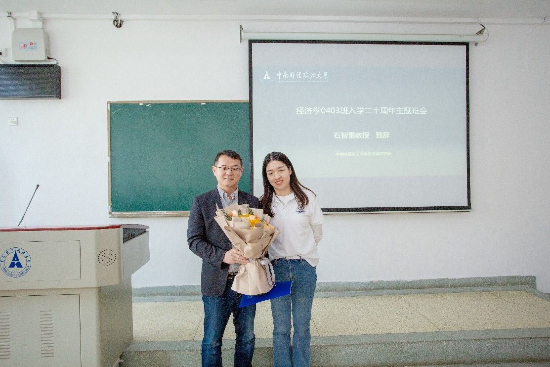 你好,老同学,好久不见”主题班会在文泰楼304教室举行,经济学院院长石智雷教授经济学04级辅导员孟庆红老师受邀出席。班会由经济学0403班学生、现任我校公共管理学院教师赵颖智主持。