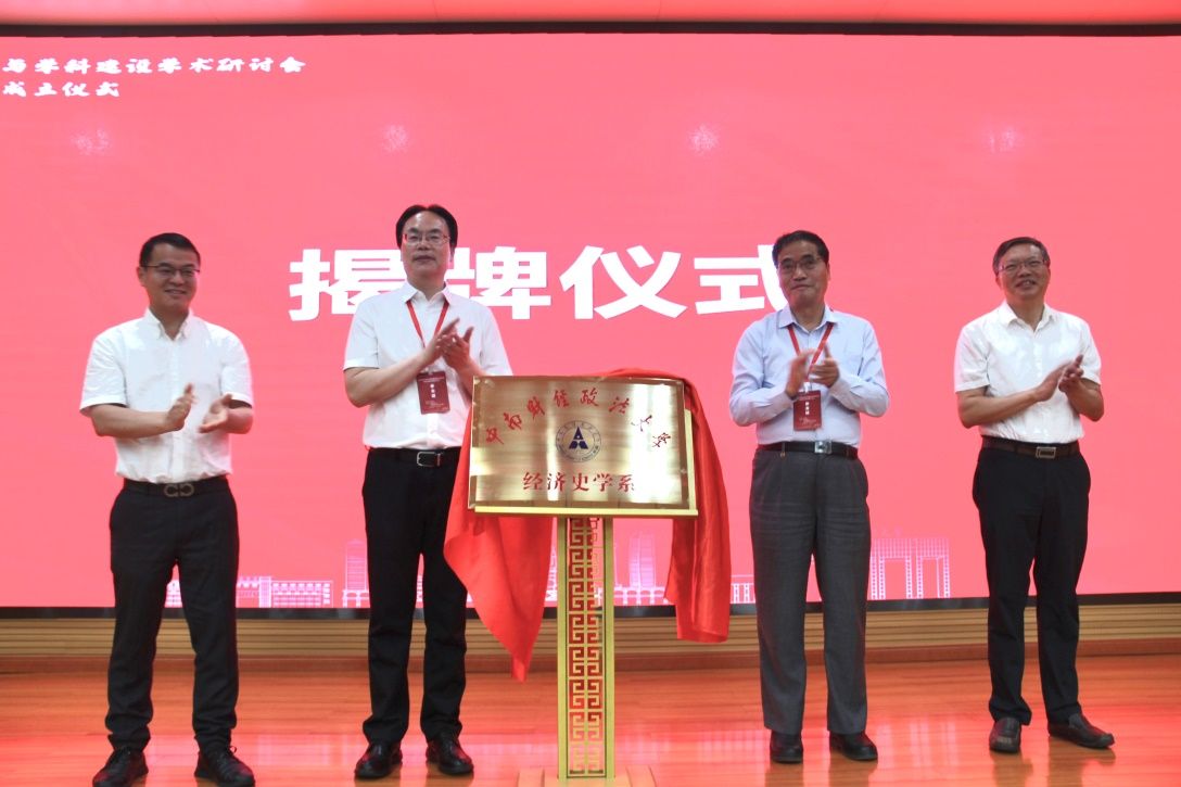随后,经济学院副院长宋丽智教授宣读贺信,魏明孔会长和程霖会长共同为经济史学系揭牌,石智雷院长向张连辉教授颁发经济史学系系主任聘书。