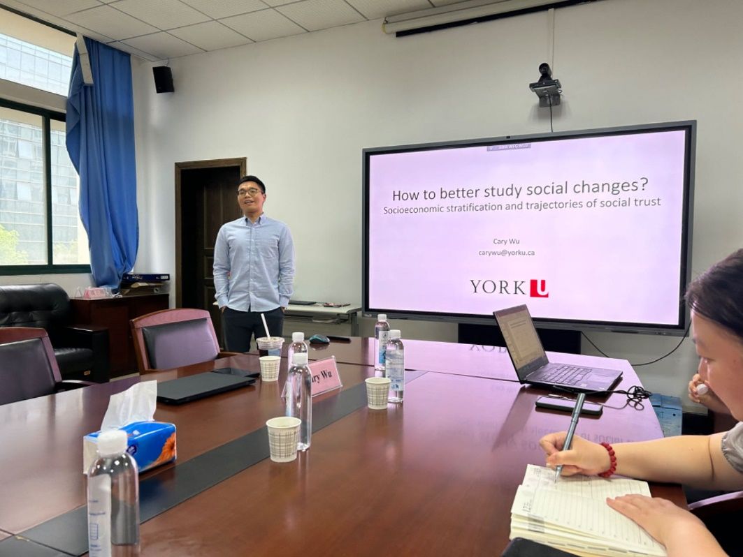 2024年7月13日上午9:30,第65期“文澜高端论坛系列活动”在文泉楼南207会议室成功举办。加拿大约克大学的首席研究教授Cary Wu受邀以“社会经济分层与危机时期中信任的变化轨迹”为主题,分享了如何使用纵向潜在类别分析方法(LLCA)识别社会信任变化及其在不同人群中的变化趋势。本期讲座由经济学院院长石智雷教授主持,经济学院刘绮霞教授、何国卿博士、叶琴博士、刘玲博士等,以及经济学院博士生、硕士生等20余人参加。