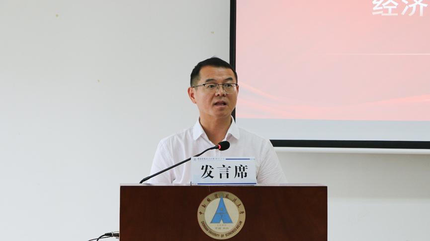 首先,石智雷院长在致辞中对加入经济学院的2024级本科新生们表示了欢迎与祝贺,并向新同学们介绍了经济学院的学院历史、师资力量以及科研成果。他表示,经济学院始终秉持“经邦济世,学术报国”的理念,辛勤耕耘,不断探索,取得了一批在国内、国际学界具有重大影响的成果,并逐渐凝练出属于经济学院的学科及专业特色。随后,石智雷院长结合经济学专业经典,以亚当斯密的“看不见的手”、凯恩斯的总需求管理及经济学开山之作《国富论》为据,向同学们展示了经济学的学科魅力并通过分享三本“书”的方式启迪同学们如何开启属于自己的大学生活,一是“读好经济之书以成才”二是“读好社会之书以修身”三是“读好人生之书以正心”。他希望同学们能在这个全球化与信息化时代的交汇点书写属于自己的华章,并鼓励本科新生们以坚忍不拔之志,积极求知,主动学习,不忘初心,砥砺前行,成长为具有全球视野、战略思维、创新能力和实践经验的经济领域佼佼者。