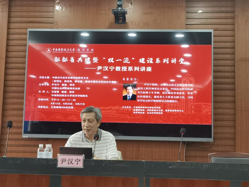 2024年9月20日下午14:30,部部省共建暨“双一流”建设系列讲堂——尹汉宁教授系列讲座第二期在文泉楼南206会议室正式开讲。本次讲座由经济学院、发展规划部、科研部共同主办,也是经济学院学习贯彻党的二十届三中全会精神系列活动的重要组成部分;经济学院院长石智雷主持本次讲座,经济学院原党委书记胡江滨,发展规划部工作人员以及经济学院的教师、博士生、硕士生等100余人参加。