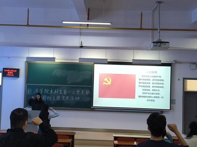(通讯员 田鹏程 摄影 佟汭昕)为深入学习贯彻习近平总书记在庆祝新中国成立75周年招待会等会议上的重要讲话和重要指示精神,进一步推动党建和业务工作深度融合。10月24日下午,经济学院本科生第一、第二党支部在南附楼203室联合开展了十月主题党日活动。本次活动由第二党支部组织委员樊羽嘉同志主持,经济学院本科生第一、第二党支部全体党员参加此次活动。