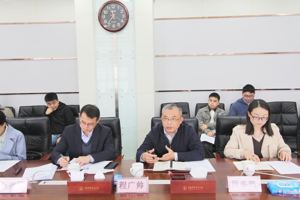 1119日,为深入学习贯彻党的二十届三中全会精神和习近平总书记关于人口工作的重要论述,为湖北省构建生育友好型社会、推进湖北省人口高质量发展献计出力,湖北省委统战部常务副部长王济民带队,湖北省民主党派成员代表及专家学者到我院开展2024年第6期“同心议政”活动。中南财经政法大学党委副书记陈狮、中南财经政法大学副校长邹进文,中南财经政法大学经济学院院长、人口与健康研究中心主任石智雷出席本次活动。此外,还有来自中南民族大学、湖北第二师范学院、省妇幼保健院、省肿瘤医院、亿童文教股份有限公司以及中南财经政法大学公共管理学院的民主党派成员代表、专家学者参加活动。省委统战部常务副部长王济民主持本次活动。