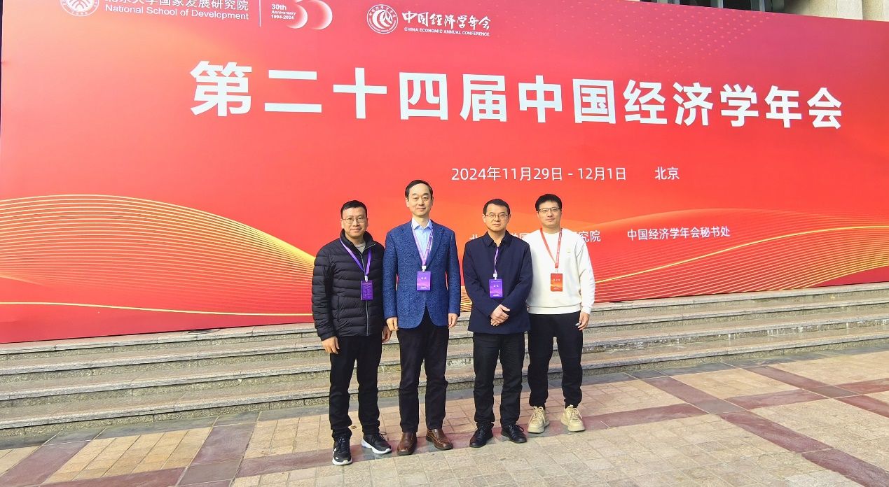 2024年11月29日—12月1日,2024年第二十四届中国经济学年会在北京大学国家发展研究院举行。经济学院是中国经济学年会理事单位之一,石智雷院长带队(杨波教授、谢靖副教授、周强副教授、周上尧博士)等参加了本次年会。其中,石智雷院长作为年会理事单位代表,参加了11月29日晚的院长(主任)联席会议,杨波教授等作为年会特邀嘉宾参加了年会分论坛主持人,周强副教授作为理事单位成员代表参加了年会理事单位成员会议,谢靖副教授、周上尧博士等作为论文指导老师,指导硕士生参加了年会论文的现场宣讲与汇报等。