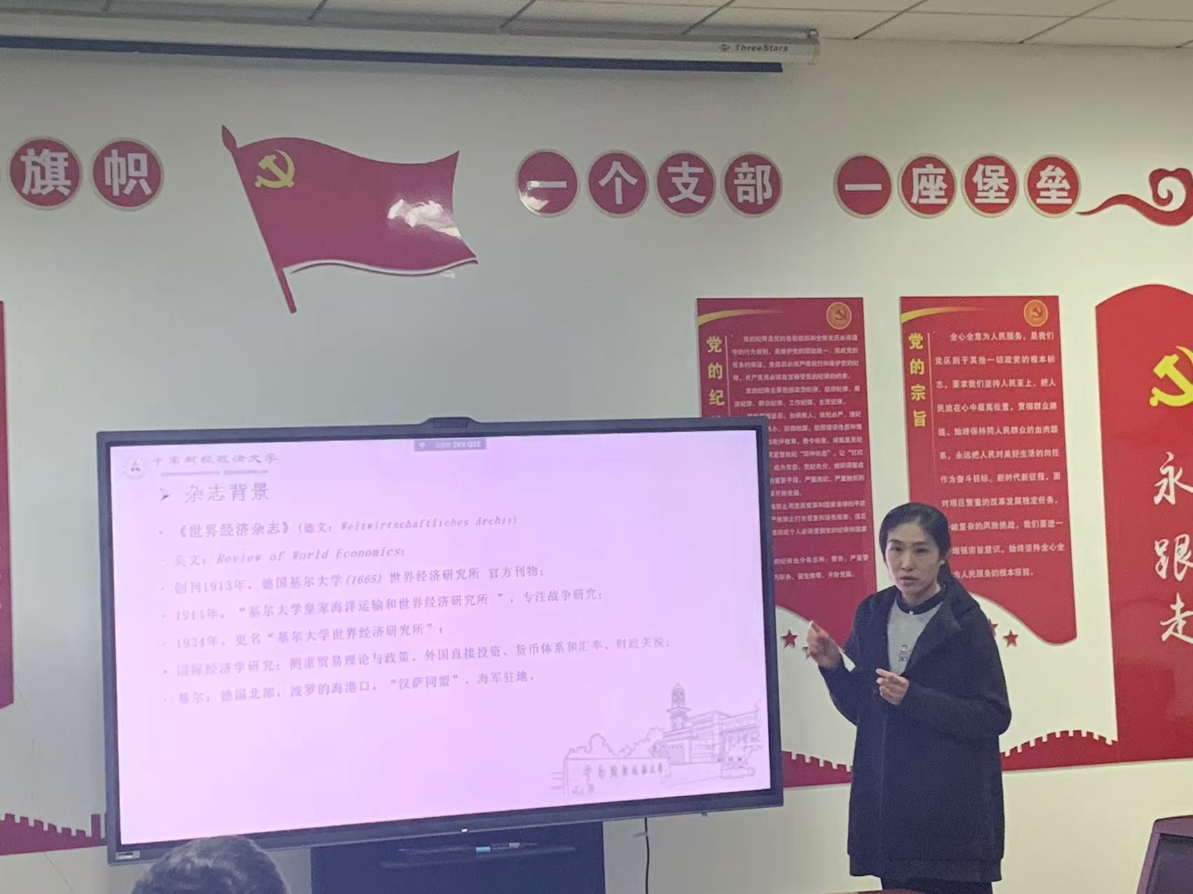 2024年12月22日19:00中南财经政法大学经济思想史学术沙龙第八期在文泉楼南203会议室举办。本次沙龙的主题是《德国<世界经济杂志>视野下的中国近代经济》,由经济学院2023级博士研究生王帆主讲,副校长邹进文教授和经济学院副院长宋丽智教授担任评论人。