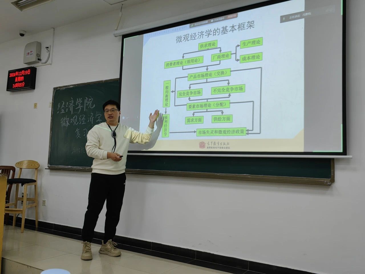 活动伊始,谢靖老师以“价格”这一核心概念为切入点,为同学们构建了微观经济学的整体知识框架,内容涵盖供求理论、费者行为选择生产者行为选择三大核心部分,带领同学们厘清微观经济学的知识脉络及各章节之间的逻辑关系。谢靖老师不仅注重知识的讲授,还十分关注同学们的学习方法,他建议同学们在复习过程要避免盲目刷题,应深入理解每个知识点的内涵,掌握有效的学习方法,这样才能真正做到事半功倍。在讲解微观经济学整体知识体系后,谢靖老师按照章节顺序由浅入深地为同学们梳理了各章的知识要点。