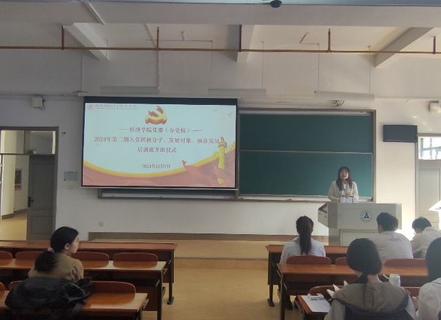 (学生通讯员:黄佳诺)深学细悟强本领,强基铸魂凝人心。为了深入贯彻习近平新时代中国特色社会主义思想,加强党性修养,11月7日下午,经济学院2024年第二期入党积极分子、发展对象、预备党员培训班于南湖校区南附楼304教室正式开课。经济学院研究生工作办公室主任岳明泽、分团委书记、2021级本科生辅导员陈远瞻、2024级本科生辅导员沈鹏飞、2023级本科生辅导员包伦娜老师出席此次开班典礼,活动由党务秘书雷菁老师主持。
