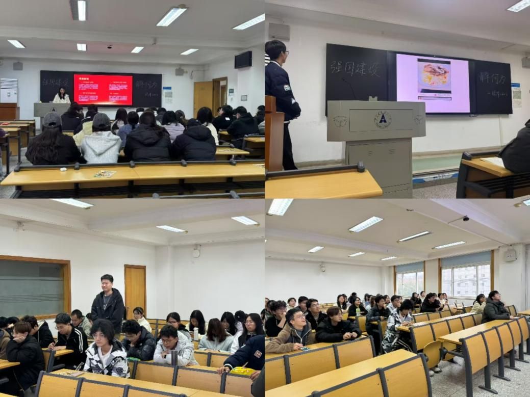 班级导师结合亲身经历与政策文件,向同学们强调了学业成绩在本科阶段的重要性,鼓励同学们持续学习,以开放包容的心态主动加强与同学、师兄师姐、老师的交流,将专业知识与社会实践紧密结合,为强国建设凝聚更多智慧与力量。