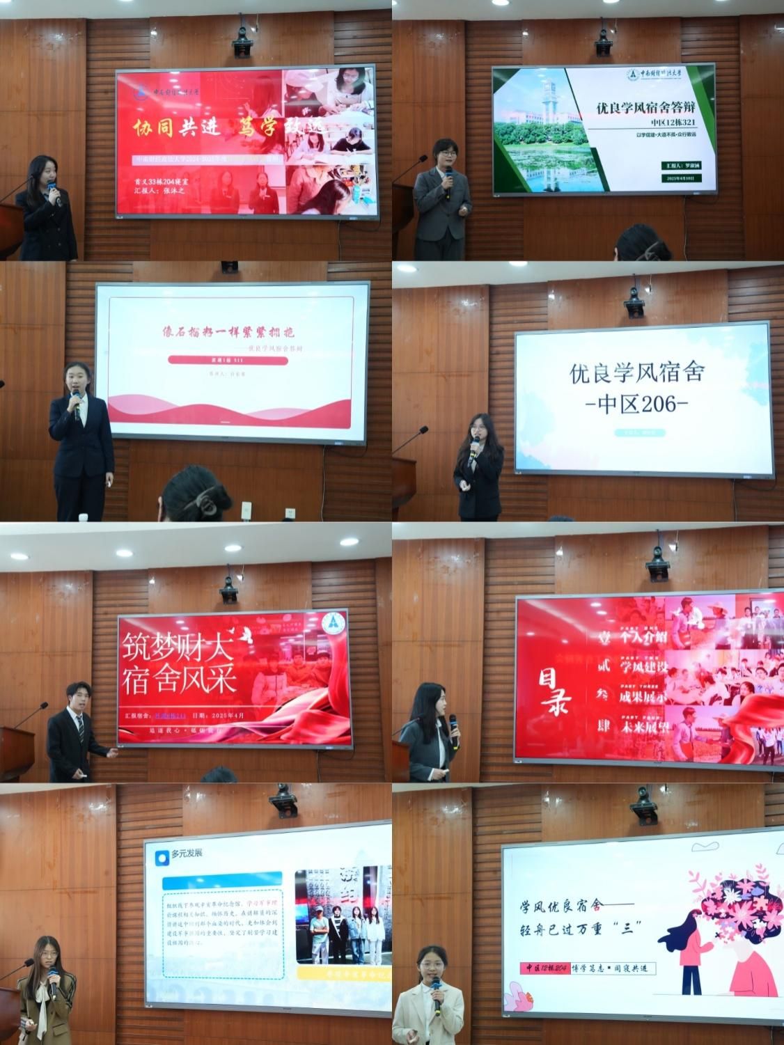 在“优良学风宿舍”答辩环节。首义33栋204、中区12栋321、滨湖1栋511、中区12栋206、环湖6栋244、中区12栋203、首义33栋203、中区12栋204的寝室长依次进行展示,他们从个人学业成果、互助学习机制、特色文化活动等多方面阐述了各寝室在学风建设方面的成就与探索,并以寝室文化促进彼此间互学互助。