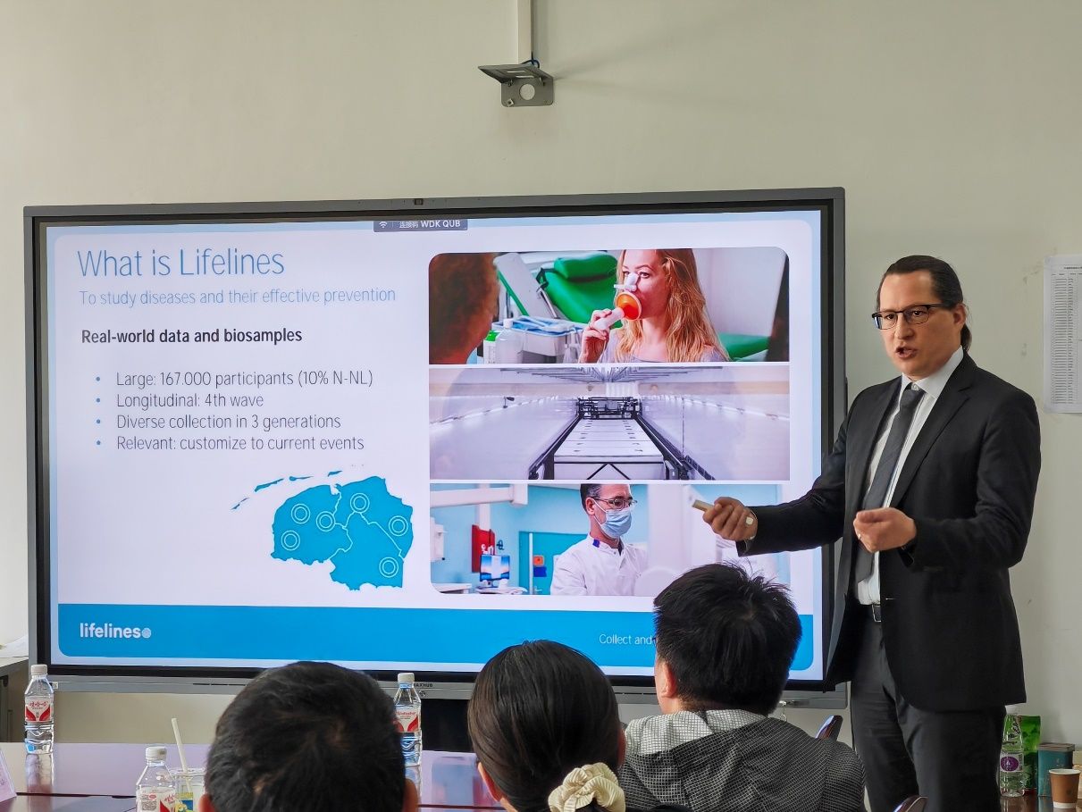 在第2期学术讲座中,Joachim Ossip Mierau教授以“生命线计划”项目为开篇,系统介绍了该项目所搭建的专业数据库及其在公共卫生政策优化、个性化医疗探索、疾病预防策略制定等领域取得的突破性研究成果,这一成果引起了现场师生的高度关注。随后,Joachim Ossip Mierau教授围绕“Lifetime Trajectories and Drivers of Socioeconomic Health Disparities”主题展开汇报,依托荷兰生命线队列研究的纵向生物标志物数据,构建包含12项指标的全因负荷指数,研究发现低社会经济地位群体的健康风险出现更早,且早于慢性病发病。通过深入分析健康行为的作用机制,Joachim Ossip Mierau教授强调了针对社会经济地位相关健康差异进行早期干预的必要性,为揭示社会经济地位影响长期健康的生理路径提供了新证据。在互动环节,与会教师对“生命线计划”数据库表现出极大兴趣,围绕其与我国现有数据库在覆盖范围、调研内容等方面的差异展开了深入探讨,并就数据库优化方向提出建议。此外,刘玲、吴姗姗等老师针对研究中指标构建方法、身体健康状况评价标准等反映长期健康影响结果等具体内容与教授进行了细致的学术交流。