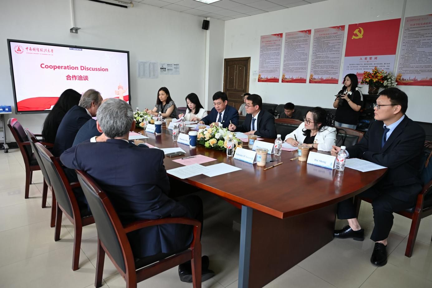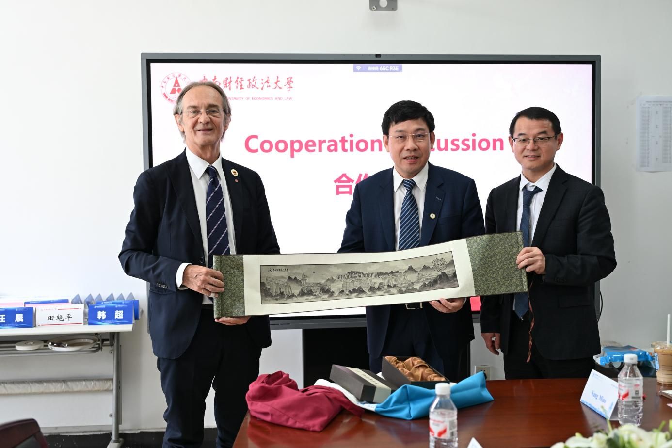 随后双方在课程合作、联合培养项目、学生互访、学者互访、共办论坛等方面充分交流了意见。在课程建设方面,双方探讨了共建本科生、研究生英文课程并推动学生互修课程、互认学分;在联合培养方面,双方讨论了3年中南财经政法大学本科+2年罗马一大硕士的本硕连读项目实施可行性;在学生、学者互访方面,双方决定继续推动两校合作框架下的交换生与学者交流活动;双方交换了共办“中意青年学者论坛”的合作意愿。