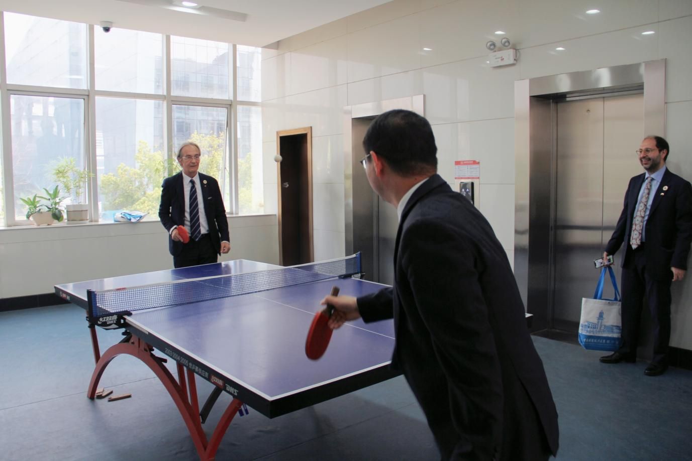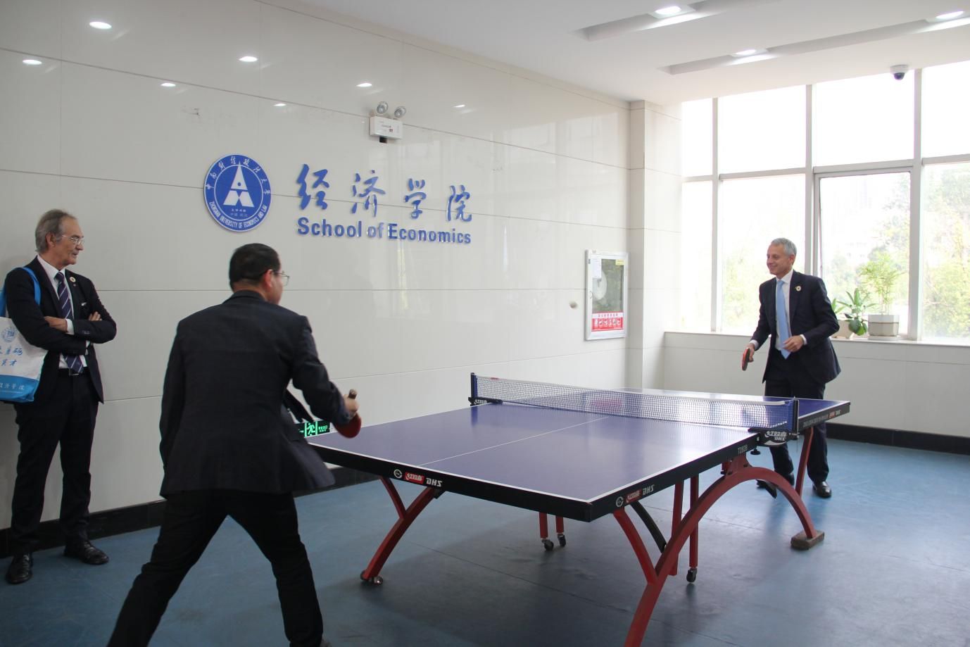 本次罗马一大代表团来我院交流访问获得圆满成功,双方在经济学院进行了友好的“乒乓交流”,在互动中增进了友谊。