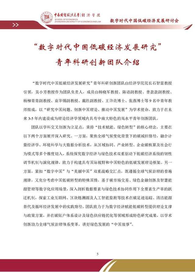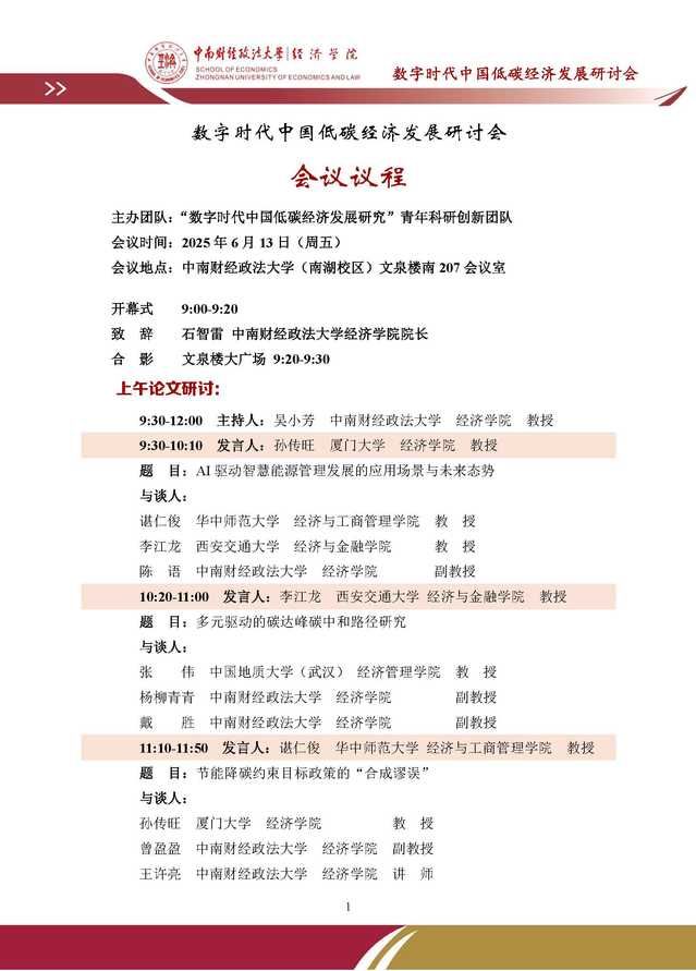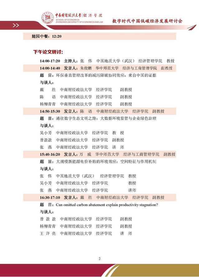 【学术会议】“数字时代中国低碳经济发展研讨会”会议议程