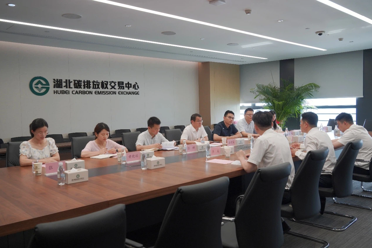 2025年6月6日下午,为推进“双碳”领域的校企合作、推动产学研协同创新,石智雷院长带队赴湖北碳排放权交易中心进行调研交流,以深化双方在人才培养、成果转化等领域的合作,共同服务湖北省绿色低碳发展。湖北碳排放权交易中心何昌福总经理、绿色贸易部李威经理、湖北中碳资产管理公司雷琦副经理、经济学院陈语副教授、张麒副教授、戴胜副教授、黄晓琪博士、贾红静博士、张燕博士等参与活动。